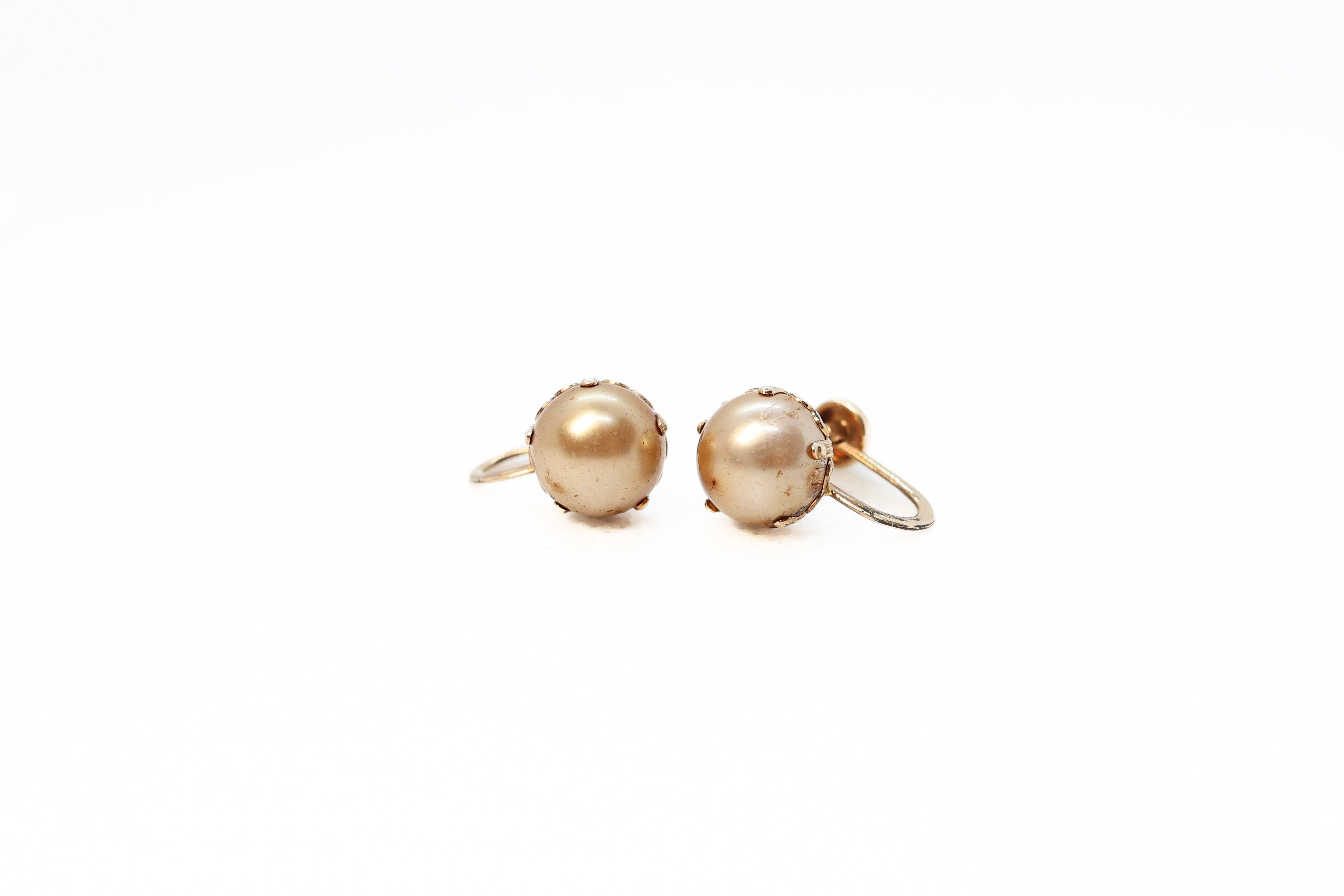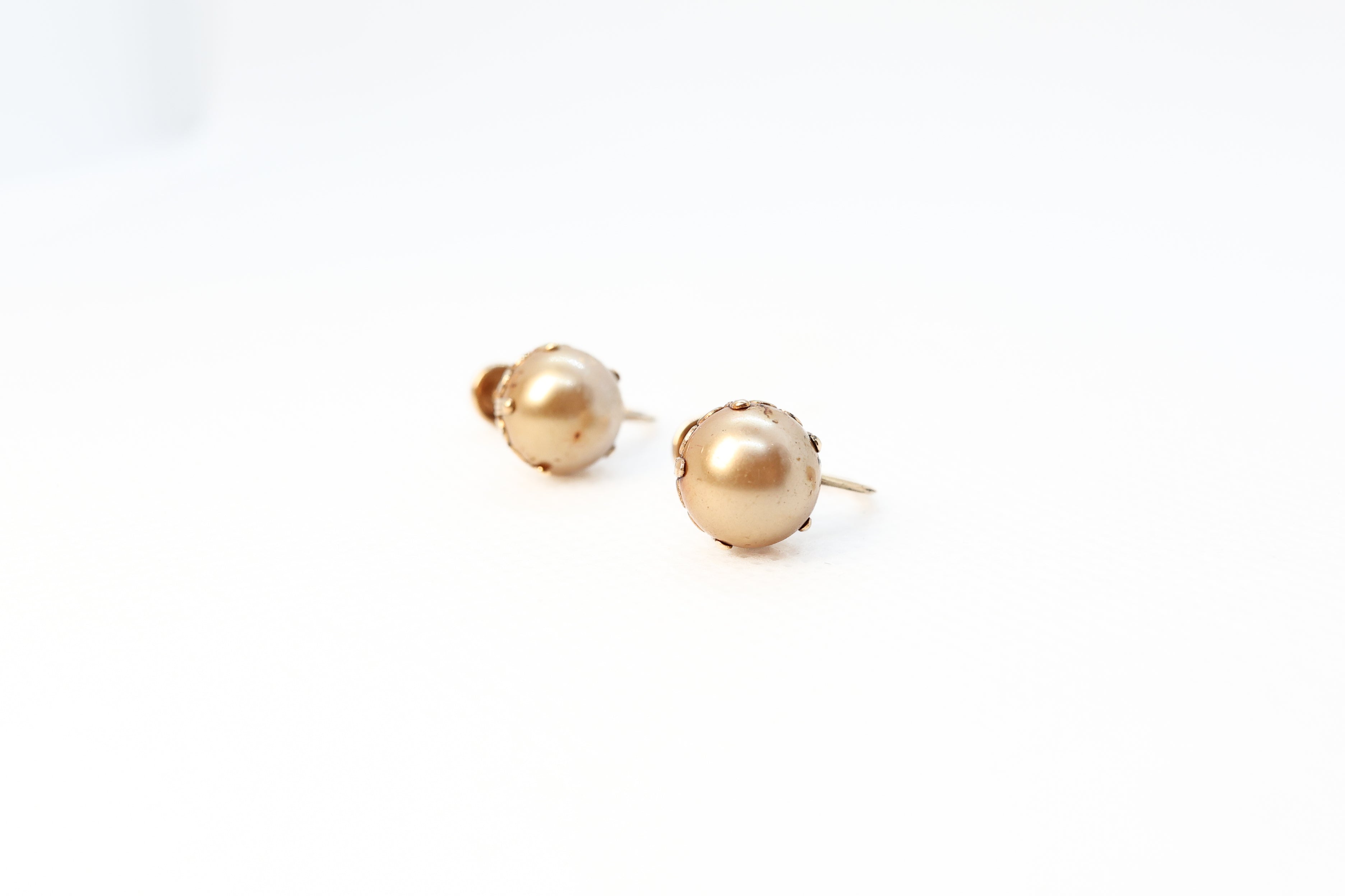 These Faux Pearl Screw Back Earrings are a beautiful addition to any jewelry collection. Crafted from faux pearls and 10k yellow gold, these stylish earrings make a subtle but strong statement. With reliable screw backings, you get peace of mind that these won't fall out while wearing these elegant and timeless pieces.